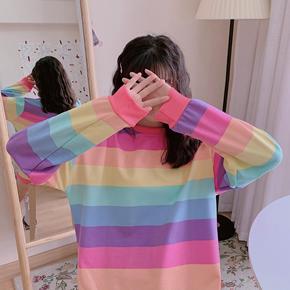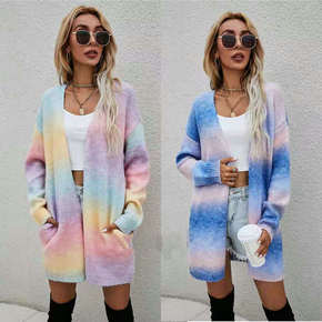 2021亚马逊冬季新品欧美外贸 跨境毛衣彩虹中长款...