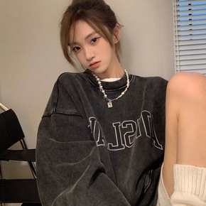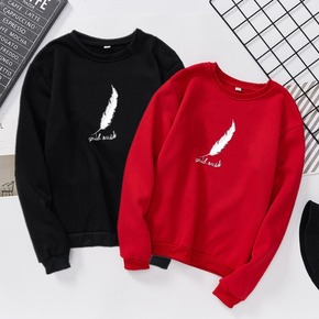圆领卫衣女秋冬加绒宽松休闲情侣无帽套头学生卫衣百搭...