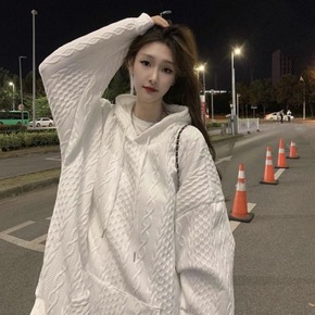 连帽麻花学生针织衫毛衣女2019秋冬新款韩版短款套...