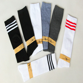 原宿潮流男女街舞长筒二杠条纹欧美滑板情侣精梳棉运动...