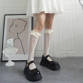 花边堆堆袜秋冬仿双针森系原宿花边女袜中筒袜日系长袜...