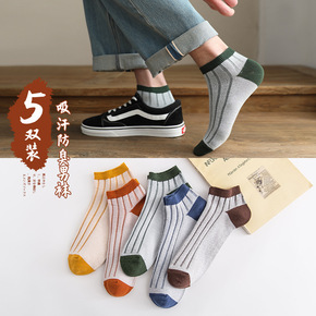 浅口男袜条纹吸汗透气船袜日系原宿短袜男撞色搭配舒适...