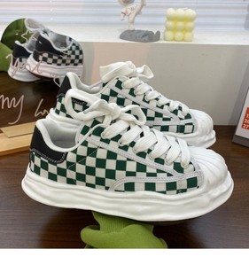 厚底帆布鞋女2022年新款黑白格子鞋原宿韩版ulz...