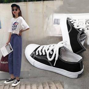 帆布鞋女百搭黑色2021新款春夏韩版学生原宿风平底...