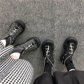 #x玛丽珍老爹鞋女2021夏季新款圆头厚底网红魔术...