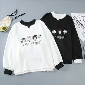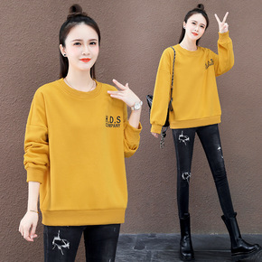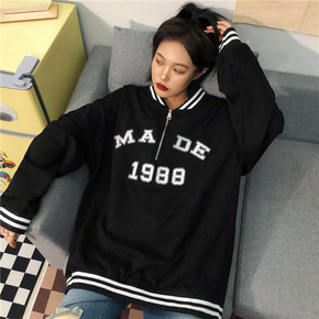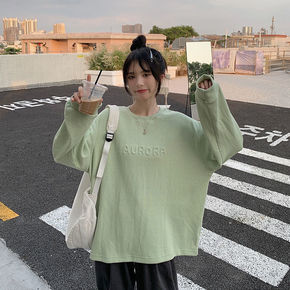 长袖上衣女春秋季学生韩版宽松卫衣原宿薄款新款潮加绒...