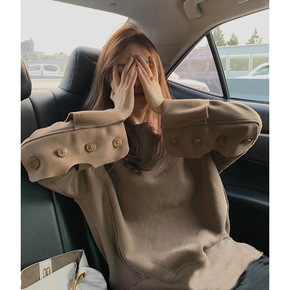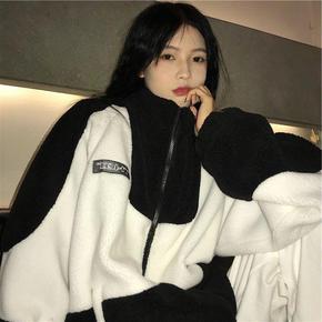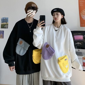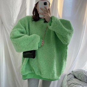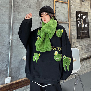 秋冬oversize复古BF原宿风宽松加绒圆领青蛙...