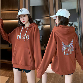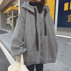 秋冬季大码开衫加绒连帽卫衣女韩版学生宽松情侣200...