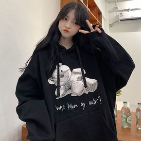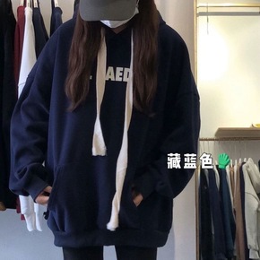 加绒加厚秋冬季连帽原宿卫衣女宽松长袖韩版学生上衣i...