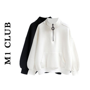 秋冬款套头翻领街头潮人纯色肤色韩版潮流长袖简约棉圆...