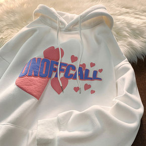 美式复古爱心字母发泡印花卫衣女宽松原宿情侣加绒连帽...