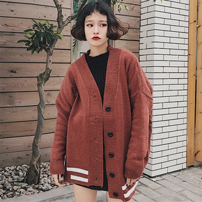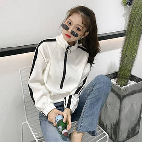 秋季韩版原宿风长袖宽松加绒拉链外套女学生薄款开衫连...