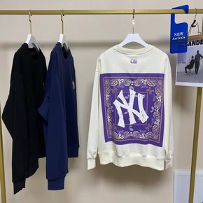 春季韩国MLB情侣款后背腰果花圆领卫衣NY男女款休...