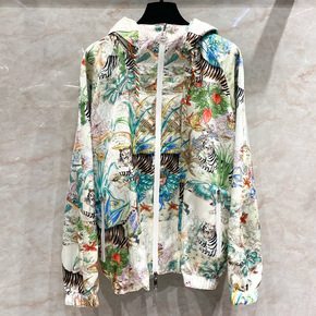 水墨画老虎动物丛林印花带帽风衣外套男女ins网红同...