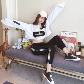 2022年春装新款中长卫衣女TB条纹印花+紧身裤时...