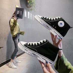 2022春季新款高帮帆布鞋女韩版学生ulzzang...