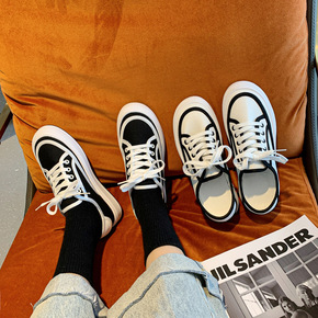 帆布鞋女2022年新款韩版ulzzang黑色板鞋学...
