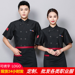 酒店厨师服短袖 西餐厅饭店厨师工服 夏季厨房工作服...