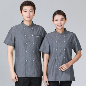 高端厨师服短袖夏装上衣薄款透气饭店餐饮连锁店工作服...