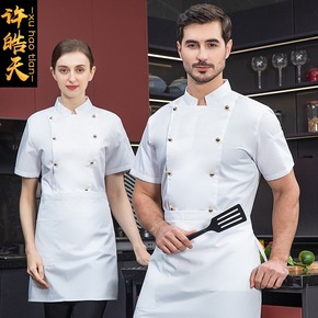 厨师服短袖棉质半袖厨师工作服厨房西餐厅男女酒店工作...