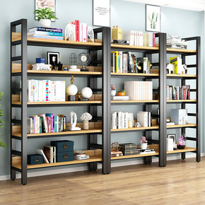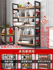 书架落地钢木简约多层货架收纳储物架家用客厅书柜铁艺...
