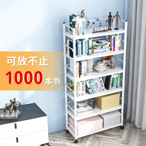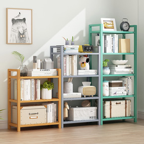 简易书架落地多层移动置物架家用铁艺钢制客厅收纳书柜...