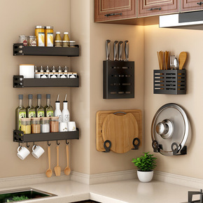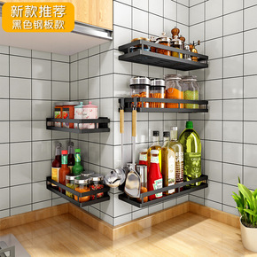 黑色不锈钢厨房置物架壁挂调料架免打孔调味用品卫浴多...