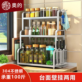 304不锈钢双层调料架厨房置物架调味料架用品刀架收...