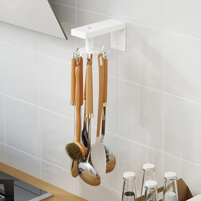 厨房免打孔旋转挂钩置物架勺子锅铲收纳架墙上壁挂式锅...