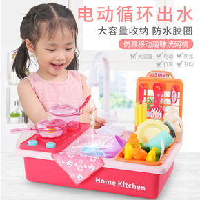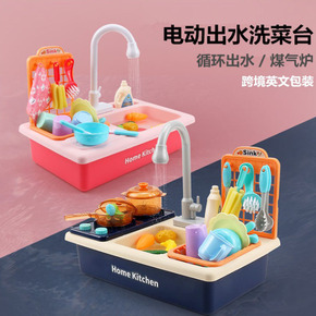 跨境儿童电动循环出水洗菜盆厨房煮饭套装过家家洗碗洗...