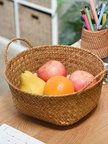 手工草编水果收纳篮桌面藤编果盘厨房储物篮家用杂物整...