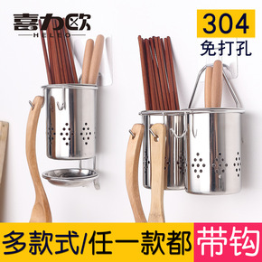 壁挂式筷子筒筷子笼家用塑料厨房用品免打孔勺子筷子收...