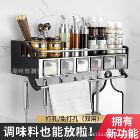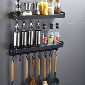 黑色厨房置物架壁挂多功能省空间调味品储物架子调料收...