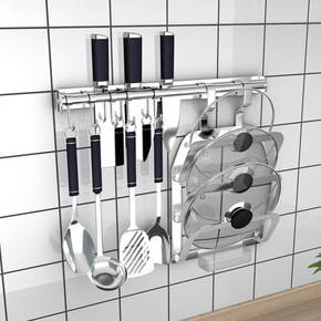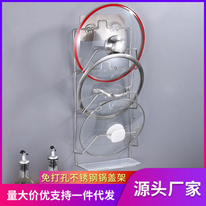 304不锈钢厨房置物架放锅盖架壁挂带接水免打孔收纳...