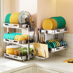 不锈钢壁挂碗碟架家用餐具架沥水架接水盘厨房置物用品...