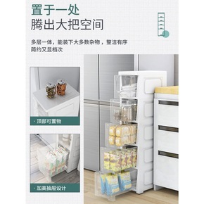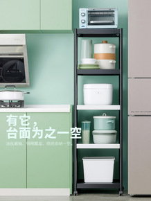 厨房置物架落地多层夹缝收纳架冰箱窄缝隙抽拉式放锅架...