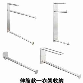 伸缩款衣架收纳神器不锈钢壁挂阳台家用免打孔晾衣架多...
