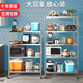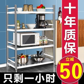 货架厨房用品家用大全置物架不锈钢锅架微波炉架落地式...