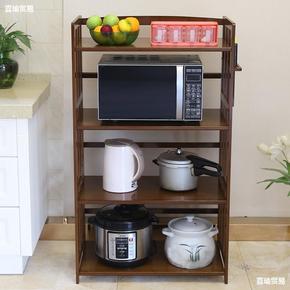 层落地家用锅架收纳实木多层置物架储物架4厨房3烤箱...