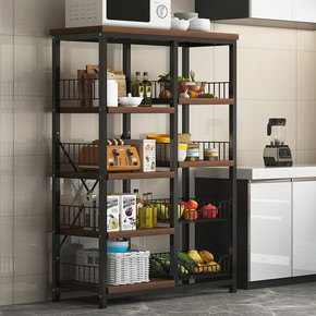 厨房用品家用大全置物架落地多层锅具收纳餐边橱柜烤箱...
