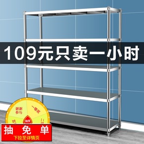 304不锈钢厨房置物架五层储物收纳加厚5层落地式多...
