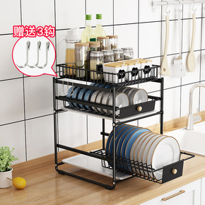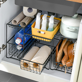厨房橱柜下水槽洗手池分层置物架双层抽屉式收纳架盒调...