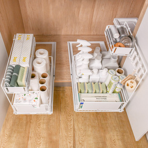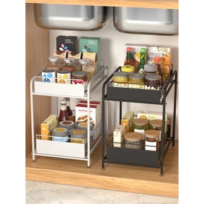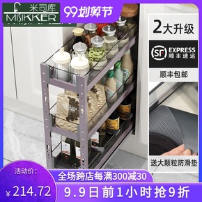 厨房橱柜拉篮玻璃窄柜调味篮迷你调料置物架储物开门抽...