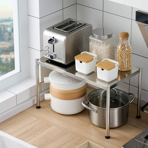 不锈钢厨房台面分层置物架桌面放微波炉锅具调料收纳架...
