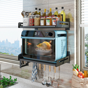 厨房壁挂置物架微波炉墙上储存架烤箱架支架调料电器不...