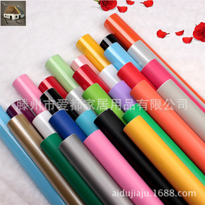 素色加厚亮光面PVC自粘烤漆贴纸纯色墙纸厨房壁纸防...