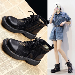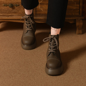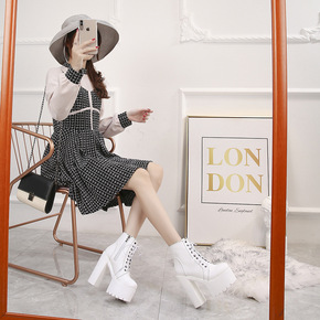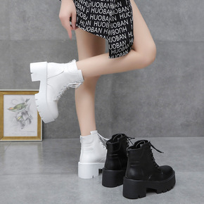 韩版朋克圆头厚底松糕短靴系带粗跟高跟马丁靴及踝靴单...