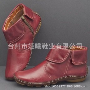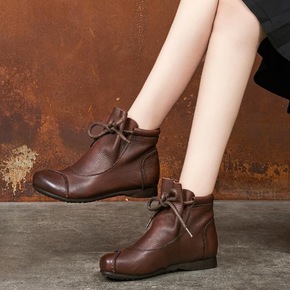 复古手工森系民族风春秋单靴裸靴软皮女士百搭休闲防滑...