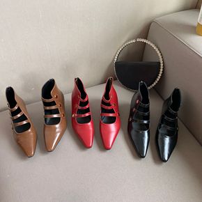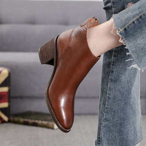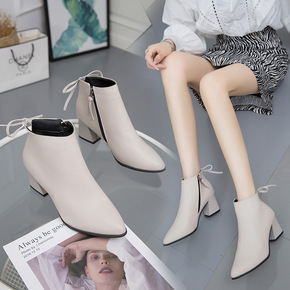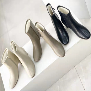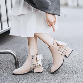 法式小短靴及踝靴2021秋冬新款粗跟马丁靴方头中跟...