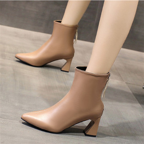 By2021秋冬新款中高跟瘦瘦靴春秋单靴中跟粗跟踝...